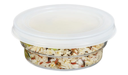 mit hermetisch schließendem, semi-transparentem PE-Deckel,
